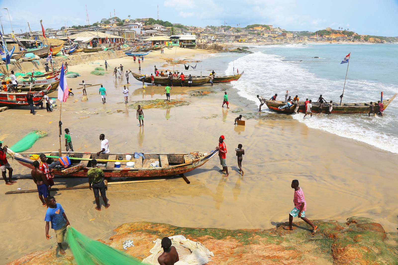 宿に荷物を置いてから早速ケープコースト城を見てみることにした。必ずガイドがつくようで、他に外国人が5人ほどいるグループに入った。奴隷が入れられていたチャンバーや船に乗せられるまでに通る通路、お仕置き部屋などを見て、船着き場への扉をくぐると、そこは漁村だった。当時は門をくぐったところから奴隷を船に乗せたそうだ。